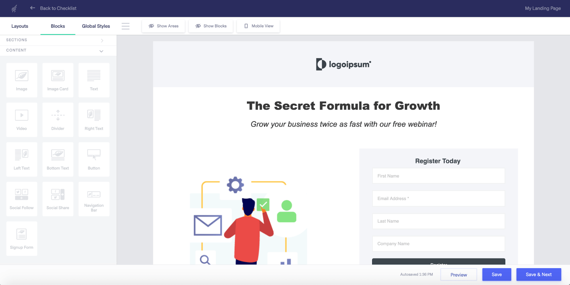 登陆页是为您的行销计画创造投资报酬率的关键。现在有了 Benchmark 全新的登陆页编辑器,您可以设计出锁定目标客群的页面,打造与顾客直接相关的讯息。与其将一群联络人引导至您的官网主页,不如将他们带往量身打造的登陆页吧!也许是独特的促销活动,或者是新推出的电子书、最新一期的线上课程等等,完全依照订阅者的需求而定。